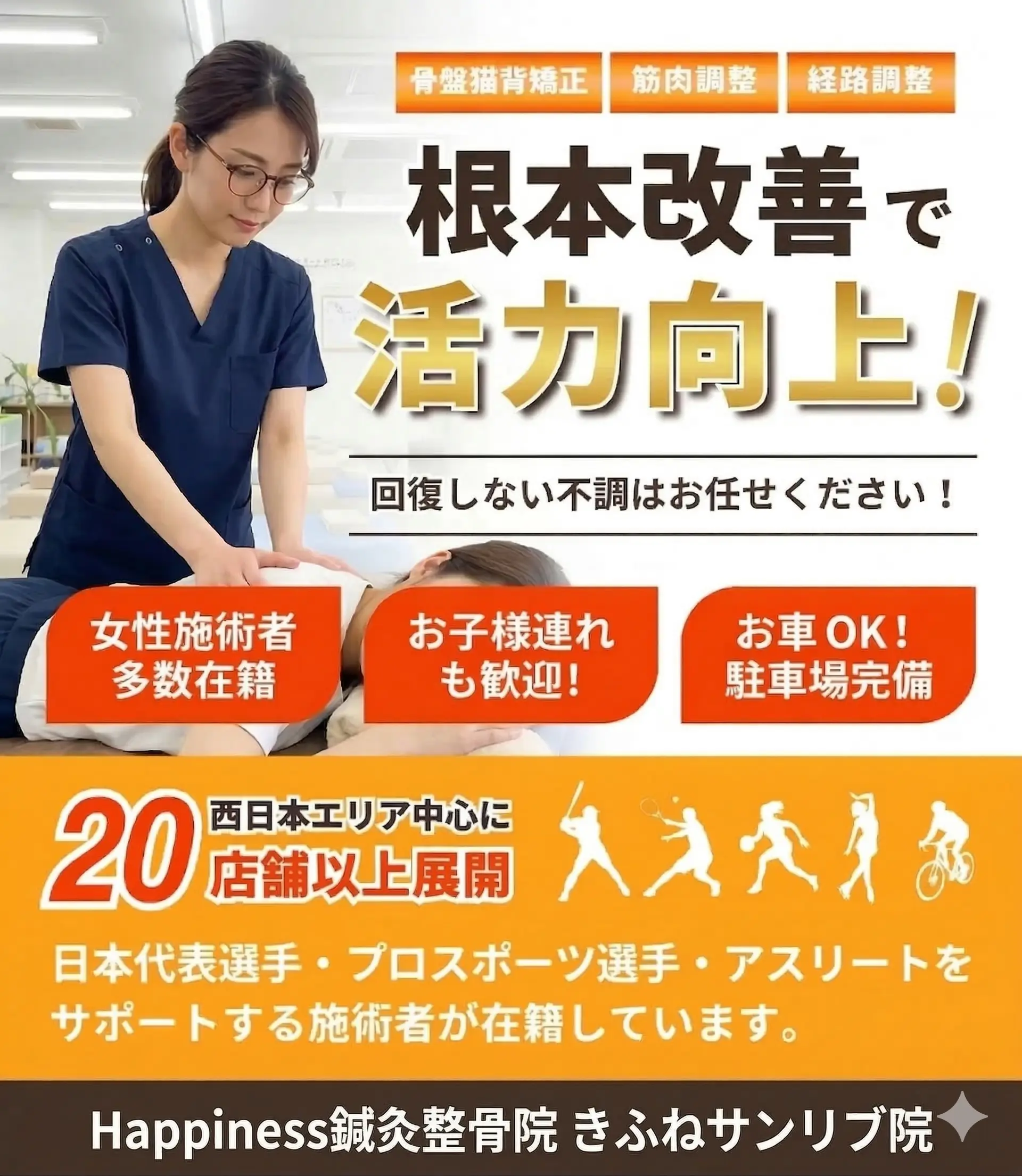 当院は、九州医療スポーツ専門学校との密な連携に基づき、医学的知見を取り入れた施術を提供しています。さらに、子ども運動トレーニングセンター「グラッチャ」のサポートを通じ、お子様の成長痛やスポーツ障害の早期発見と改善にも注力。この連携体制により、「0歳から100歳まで」あらゆる世代の方々の健康を、自信を持ってサポートできることが私たちの強みです。